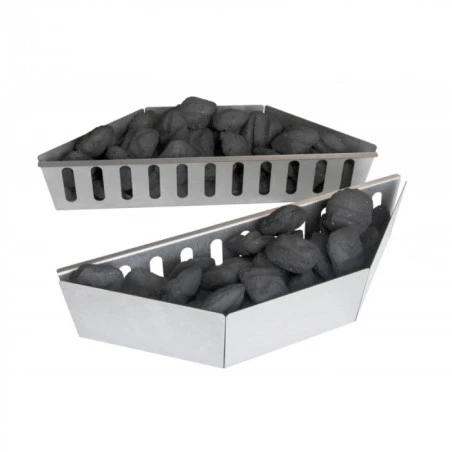 Les paniers à charbon Napoléon ont été spécialement élaborés pour garantir leur compatibilité avec tous les types de barbecues circulaires. Deux supports solides conçus en acier aluminé sont mis à votre disposition pour accueillir aussi bien des morceaux de charbon que des copeaux de bois, permettant une cuisson indirecte de vos aliments sur votre barbecue au charbon de bois.